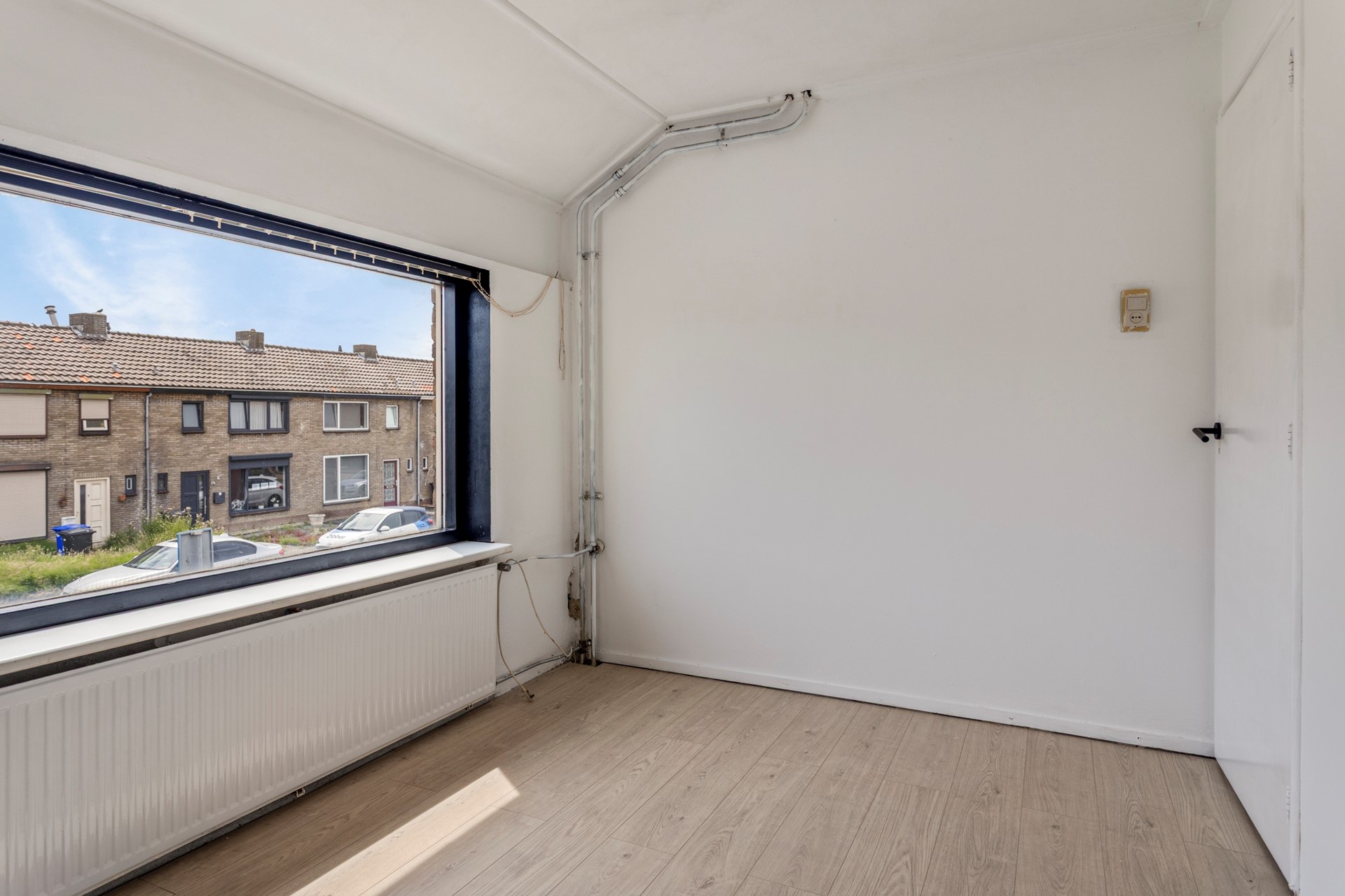Bij binnenkomst valt direct de ruime hal op, voorzien van een praktische kelderkast en een apart toilet. Loop door naar de lichte woonkamer, waar de grote ramen zorgen voor een prettige lichtinval en een open gevoel. Zet je bank zo neer dat je uitkijkt over de straat terwijl je geniet van een goed boek of een rustige avond.