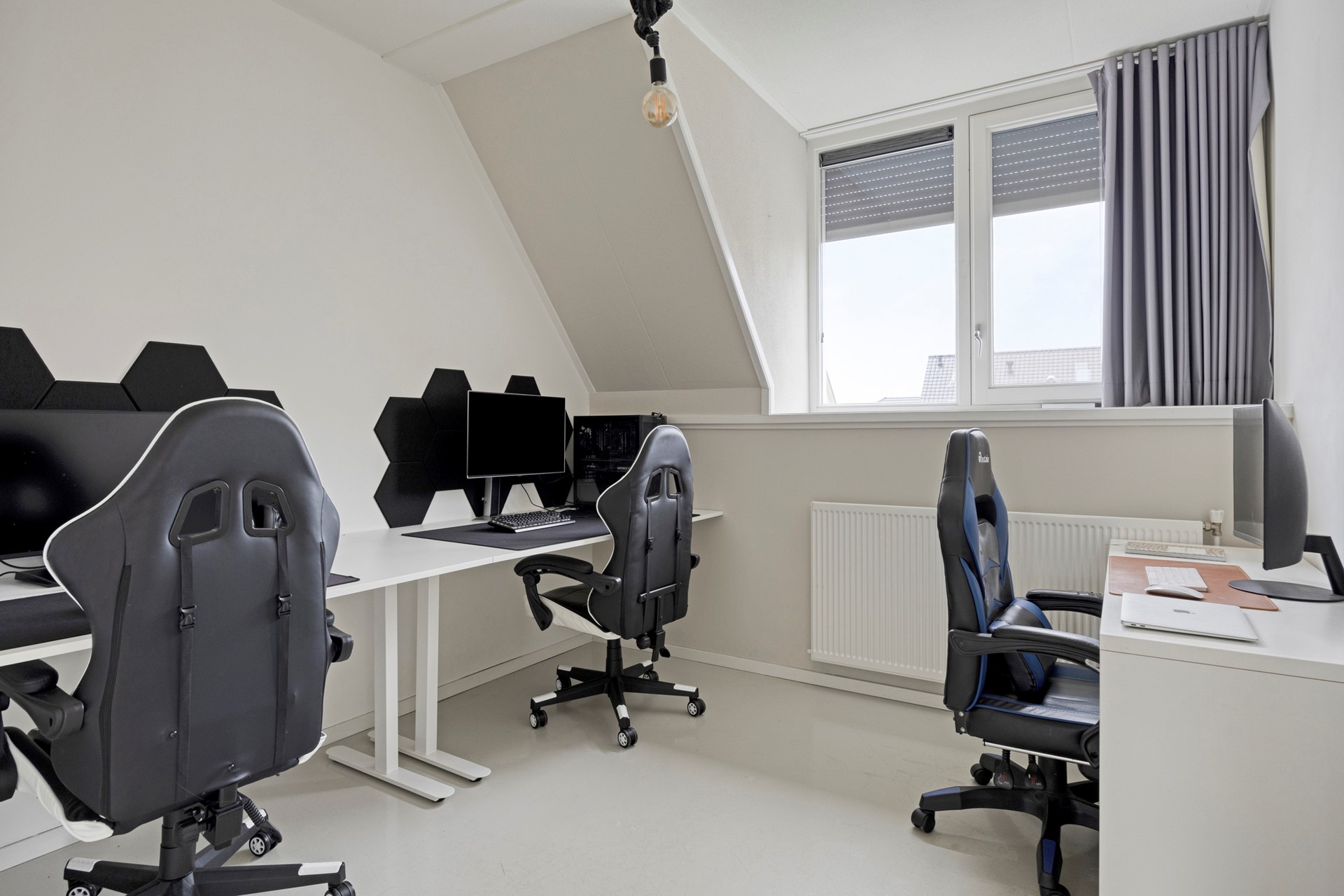 De badkamer is ingericht met een douchecabine, toilet en wastafel. De gehele verdieping is afgewerkt met een witte gietvloer. De slaapkamers aan de tuinzijde zijn voorzien van rolluiken.