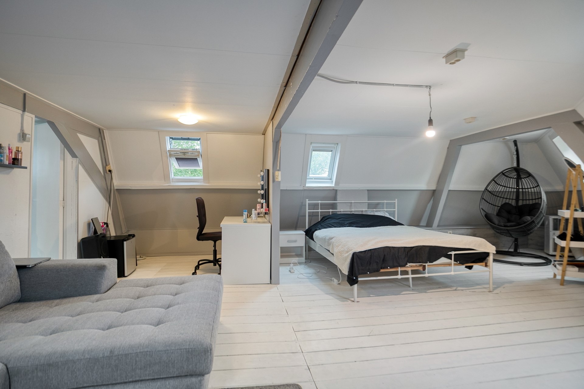 Boven de garage ligt een volledig zelfstandige studio met eigen keuken, douche, toilet en woon-/slaapgedeelte. Deze ruimte is ideaal voor verhuur, een zelfstandig kind of als gastenverblijf. De studio is bereikbaar via de achterzijde van het pand, wat zorgt voor optimale privacy.