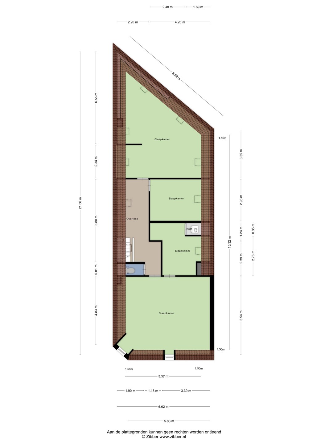 De tweede verdieping biedt drie ruime slaapkamers, waarvan één is voorzien van een inloopkast die eenvoudig kan worden omgevormd tot een vierde slaapkamer. Op deze verdieping bevinden zich tevens de cv-installatie en een extra toilet op de overloop.