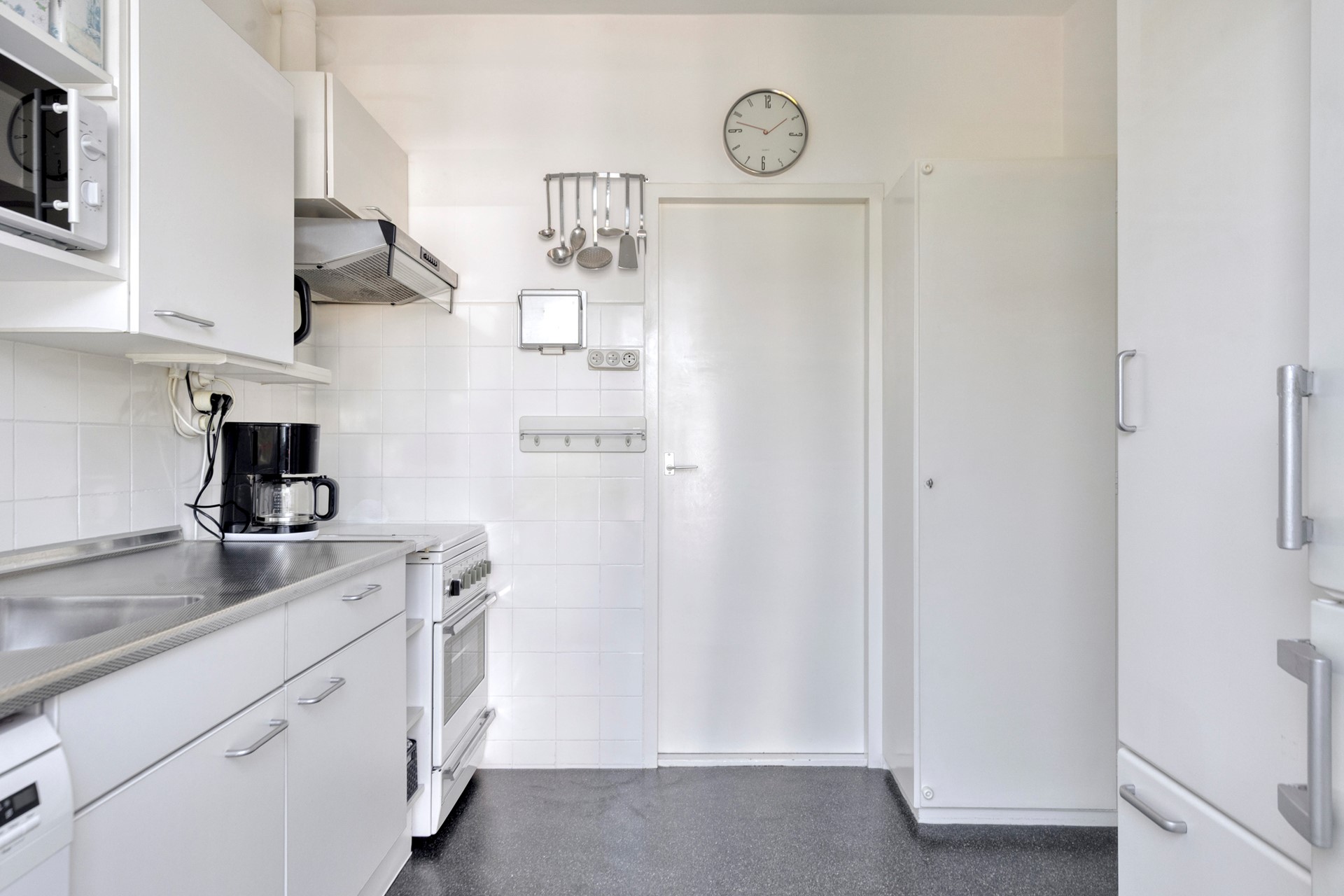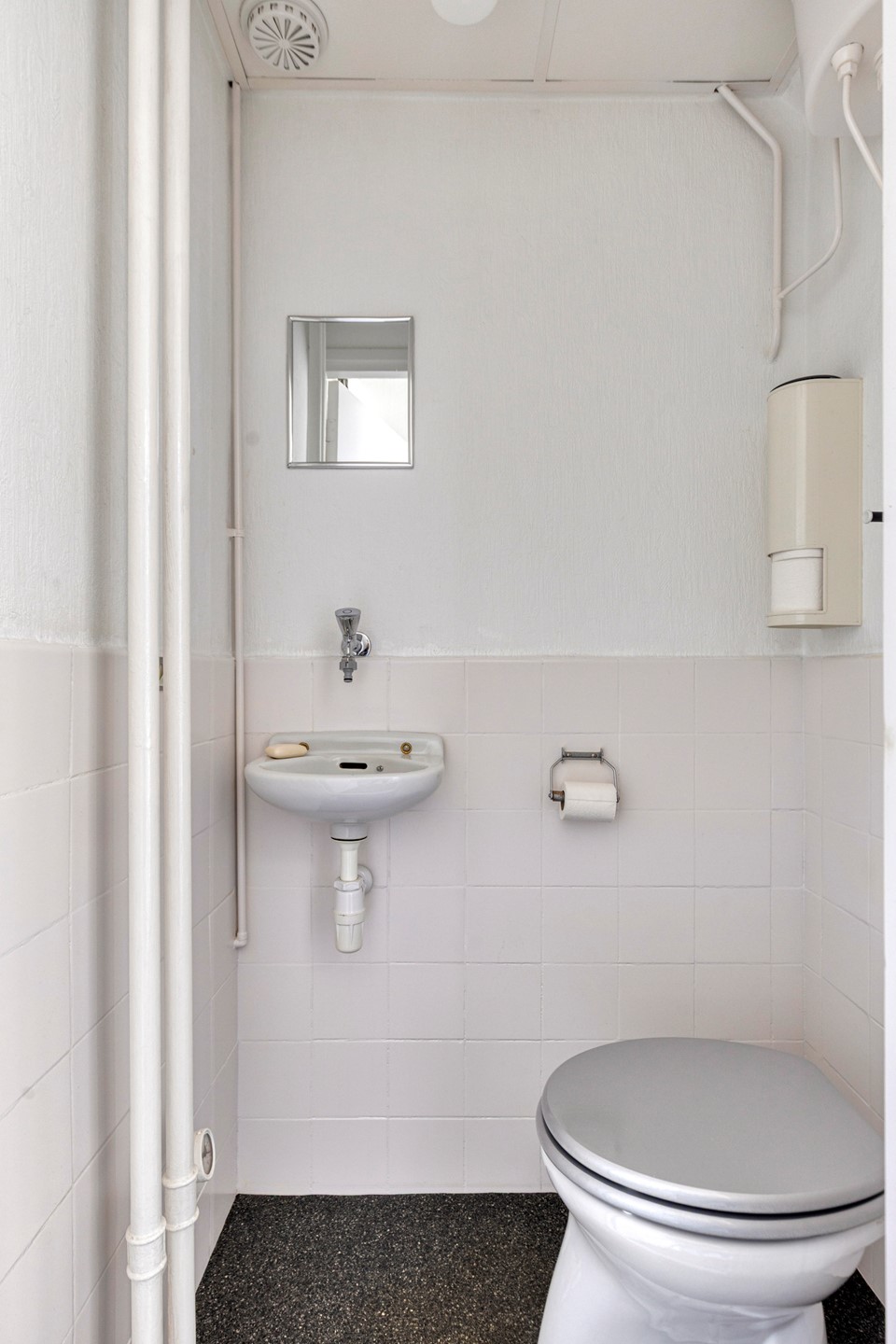 Via de entree kom je binnen in de hal met toiletruimte, waarna je toegang hebt tot de woonkamer en keuken. De woonkamer is een lichte ruimte dankzij de grote raampartijen en heeft een praktische indeling, waardoor deze gemakkelijk in te richten is. De keuken heeft een eenvoudige maar nette uitstraling en is voorzien van losse apparatuur.