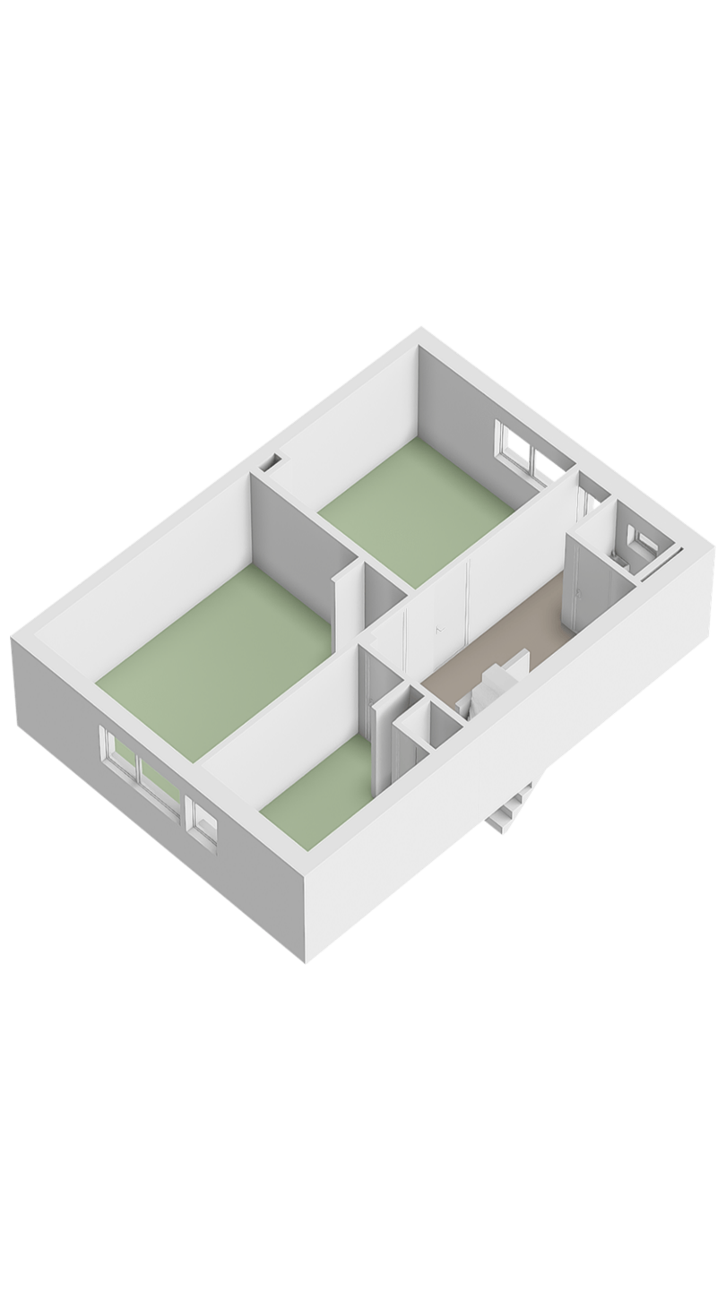 De begane grond is voorzien van een lichte, open woonkamer die overloopt in de keuken, wat zorgt voor een ruimtelijk en overzichtelijk geheel. Onder de trap is een praktische kast aanwezig voor extra bergruimte. Daarnaast bevindt zich op deze verdieping de badkamer, voorzien van een bad, waardoor de woning direct klaar is voor comfortabel wonen.