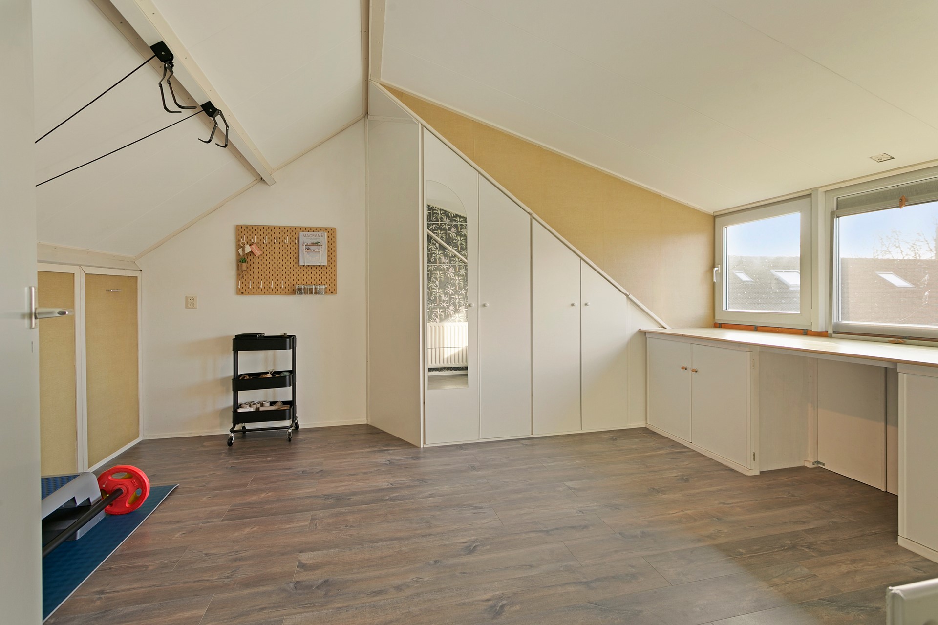 De zolder is dé plek voor extra privacy met een ruime 4e slaapkamer, compleet met dakkapel en voldoende opbergruimte. Buiten geniet je van een onderhoudsvriendelijke tuin op het zuid-westen, perfect om te ontspannen of te genieten van buitenactiviteiten. Daarnaast is er een ruime berging voor al je spullen.