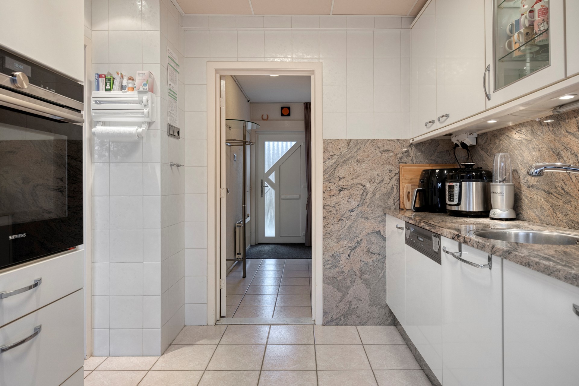 De keuken is compleet uitgevoerd en voorzien van inbouwapparatuur, waaronder: