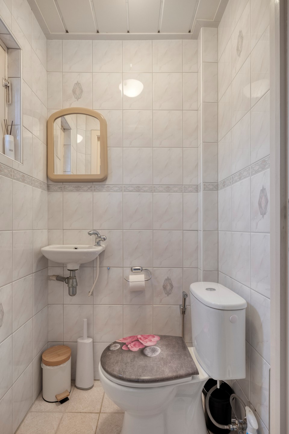 1 slaapkamer is omgebouwd tot badkamer en de originele badkamer is een waskamer. De badkamer is functioneel ingericht en bereikbaar vanaf de overloop.
