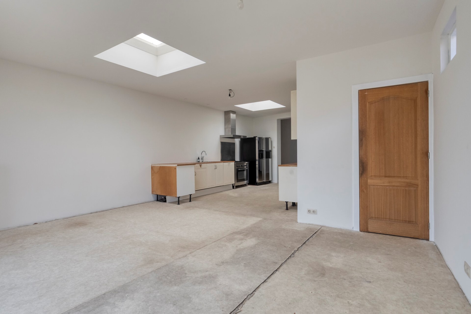 Via de entree kom je binnen in de woning waar zich de woonkamer, open keuken, een toiletruimte en een extra kamer bevinden. De woonkamer is bijzonder licht en ruim opgezet, mede dankzij de grote schuifpui en de moderne uitbouw met lichtstraat die zorgt voor een aangename en open sfeer.